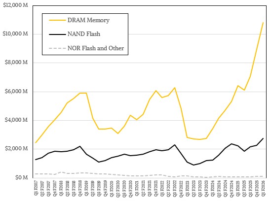 NAND flash chips, drives, and cards accounted for $2.74 billion in revenues, up 22.4 percent, and NOR flash and other stuff drove a mere $88 million in sales in Q1 F2026.