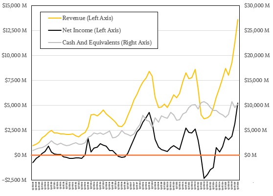 In the quarter, Micron had $13.64 billion in sales, up 56.7 percent. With operating income of $6.14 billion, up by a factor of 2.8X, and net income of $5.24 billion, also up 2.8X, it sure does look like an opportunistic pricing environment for main and flash memory.