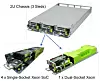 “New services tend to get mapped to existing rack types until they rise to the level of warranting their own rack design,” infrastructure designers note, pointing to the example below of the 2U chassis that holds three slides with two different server types. One has a single socket CPU supported for the web tier, which is a throughput oriented stateless workload and can run efficiently on a lower power CPU like the Xeon D with lower memory and flash. The other sled option is a larger dual-socket CPU server with a beefier Broadwell or Skylake processor and far more DRAM to tackle more computationally and memory-heavy workloads.