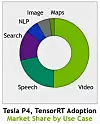 The Tesla P4 accelerator was a decent device for inference, and it has been adopted for a number of workloads. Buck was not at liberty to talk about actual revenues for the inference business in general, or the Tesla P4 in particular, but he did share with The Next Platform a breakdown of revenues by inference job type: