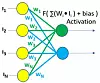 In the following figure, I’ve taken the input layer from the neural network graph above and show these being mathematically munged to next produce output of here only two nodes of a next level — one green, one blue. Again, keep in mind that there are many vertical nodes in the next (and the next and the next) level(s). You’ll notice a function shown there. That function takes each individual input value (Ii), multiplies it by an associated weighting value (Wi) and then adds all these product values together. The addition of a bias value is used as an input to the next level of the network with a last step of the function doing a form of scaling. Said differently, given the green node, it takes as input the values represented by all of the yellow input nodes, multiplies each by an associated green weighting value (Wi), and then adds all of those multiplication products together. After biasing and other functional adjustments, this becomes the output of the green node. So, again, compare this to the overall graph which I am showing again below to get the bigger picture. This is just repeatedly done with each subsequent node, and there are lots of them. And then repeated nearly ad infinitum as more input is provided, with this process resulting in changing these weight values, ultimately leading to a high probability of success at the output.