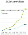 This will be the case for the current “Hopper” H100 GPU accelerator generation, too, which debuted in 2022 and which is still ramping up to meet demand. In fact, we don’t think Nvidia will be meeting H100 demand when it launched a successor GPU engine in the spring of next year, as it is slated to do based on its two-year product cadence. If history is any guide, then the H100 offers about 3X more performance across a mix of HPC and AI applications (and AI gets double that boost again as it dropped down to FP8 precision) and then another 6X will come through algorithm changes that are already underway.