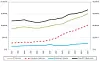Here is a longer trend chart for data we have compiled over the years from Gartner’s IT spending forecasts. The data for each year represents the last update that was publicly available as the forecasts rolled out a couple of times per year.