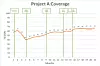 On the baseline design, Project A, this design topology made coverage convergence very challenging. The tie-offs left each instance with large unreachable cones of logic whose coverage targets could never be hit by any test. Each instance required its own unique set of coverage exclusions, so each instance had to be signed off for coverage independently. As shown in the following example for one set of coverage targets, convergence using a constrained-random testbench was slow and a large manual effort was required to reach coverage signoff.