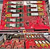 Qualcomm’s MegaCard hosts twenty M.2 NVM-Express storage cards, ten on each side of the MegaCard. NVM-Express cards are attached to a MicroSemi PM8536 PCI-Express 3.0 switch. The PCI-Express switch is connected to the Qualcomm Centriq motherboard via the PCI-Express x16 type 5 riser (above). Because of the board area needed to host ten M.2 cards, the MegaCard takes the place of a second Centriq 2400 motherboard in a full-width 1U chassis; the PCI-Express connector is on the opposite side of the riser from the type 1 card, and is mounted higher on the riser. High-end NVM-Express drives have 4 TB capacity, so Qualcomm’s MegaCard can house 80 TB of PCI-Express 3.0 NVM-Express storage.