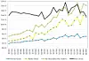 This is why we love this dataset that IDC has been building up on IT infrastructure spending for the past six years. The data is only available in summary form each quarter, but we have been watching for a long time and keep track of it and the updates IDC makes for its year-on-year spending estimates each quarter. This is not necessarily exactly the same as the model IDC has inside the company, but it is as good as you can get from the publicly available data that is free. Here are the trend lines for IT infrastructure spending – that’s limited to servers, storage, and Ethernet switching to be precise – since the first quarter of 2014. Take a look: