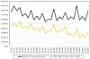 While that is interesting, what we want to know is what happens to quarterly revenues for the Red and the Blue if we roll this movie forward a decade from the Red Hat acquisition. To do that, we have to make some assumptions, of course. One assumption we are going to make is that the decline in the IBM vertical platform business will be no worse than the average over the quarters in the past three years. We think IBM is down to the diehards for both System z and Power Systems, and we also do not expect a sudden rise in Power Systems sales. (Anything is possible, particularly if IBM has a sudden change in attitude as Power10 approaches.) In any event, that decline is, on average, 4.1 percent year on year each quarter. Since IBM took over Red Hat, it has averaged just under 20 percent revenue growth year on year each quarter, although admittedly the coronavirus pandemic has not been great and it is a bit soft in the middle of 2020.