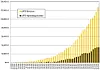 And here is the same chart on a log scale to make it easier to see the differences in the scenarios: