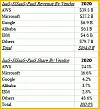 For those of you who want to know the numbers, we worked the math backwards to convert market share pie slices back to revenues in billions of dollars for 2020 by vendor and whether it was SaaS application or the combination of IaaS, SISaaS, and PaaS. Here is the IaaS+SISaaS+PaaS vendor table: