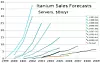 This famous Itanium server revenue forecast on Wikipedia encapsulates the enthusiasm for the chip and its deflation rather brilliantly: