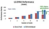 Here is a set of tests on the GRID benchmark that Intel ran (in the red and black columns again) that showed Omni-Path 100 and EDR InfiniBand essentially neck and neck; then Mellanox did a rerun of its EDR InfiniBand with the HPC-X transport tweaks, and got a pretty significant jump in performance. The processors in the two socket servers were Intel’s “Broadwell” Xeon E5-2697A chips. Take a gander: