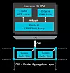 With the Neoverse designs, Arm is moving from the ring topology linking elements of the system on chip with the Cortex-A72 to a mesh topology that has higher bandwidth across the components and lower latency between them, on average, and it is this, perhaps more than anything, that is giving the Ares Neoverse N1 chip such a big performance boost compared to its “Cosmos” predecessor based on a modified Cortex-A72. Here is what the compute element of the Ares chip looks like: