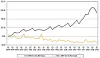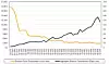 If you make some assumptions about how many cores were sold each quarter in the average server counted by IDC and layer in the IPC for the chips, you can come up with a relative aggregate performance capacity metric (in our case based on raw integer performance, excluding floating point math) for each quarter; we have the revenues from servers sold directly from IDC, and if you match these two lines up, it tells the story of just how much more capacity the world is consuming, relatively speaking, over the past decade. And it also shows how the price/performance increased dramatically as RISC/Unix machines were either vanquished from the market or dropped their prices to better compete.