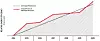 Now we know the base line, and the chart above has a log scale, so those straight lines are both exponential. They just have different rates of improvement.