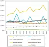 Every quarter, we try to carve out what we think is that “real” systems business, including the servers, storage, core systems software, tech support, and financing that IBM provides for its machinery. In an updated model, we have plotted out Red Hat’s revenues and estimated what we think are its contributions at the systems software level, including support licenses for Red Hat Enterprise Linux, the OpenShift container controller, the OpenStack cloud controller, and related middleware, systems management, and storage software. Our model assumes that about 75 percent of Red Hat’s revenues fall into these categories. And as you can see in the chart below, the Red Hat Effect that we have been expecting is indeed pulling IBM’s systems business up and to the right: