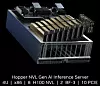 If you need to drive denser AI inference workloads, particularly for LLMs and DLRMs, then you grab the 4U version of the MGX chassis, you pop in a pair of X86 CPUs, eight of the double-wide H100 NVL accelerators, a pair of BlueField-3 DPUs and have ten PCI-Express slots left and you get this: