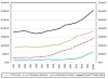 Whenever you have datasets that span more than a decade, particular during a period where there has been high inflation, it is wise to inflation adjust the data to see how “real” spending has changed over time. We set the pivot point on inflation adjustment in 2021, and as you can see, in 2021 dollars, the further you go back, the more the past data is inflated to 2021 dollars and the more you go into the future beyond 2021, the more it is deflated. This means that over that bakers dozen of years shown in the monster table, the spending curve is a little bit flatter than the raw data suggests.