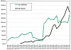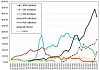 During the fourth quarter, InfiniBand products in the aggregate – chips, adapters, cables, and switches – did not outsell Ethernet products, but sales were up nicely as 100 Gb/sec EDR Quantum InfiniBand hummed along and as 200 Gb/sec HDR Quantum-2 InfiniBand both picked up. Here is how we think the various speeds of InfiniBand sold each quarter since the Great Recession: