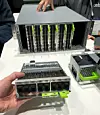 The heart of this new F16 fabric is the Minipack switch, which Facebook says will consume 50 percent less power and space than the Backpack switch it replaces in the network. The ports on the Minipack come in sleds with eight ports, which are mounted vertically in the chassis, like this:
