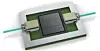 The electrical to optical bridge chip eats those four PCI-Express 4.0 x16 slots coming off the server, aggregating their bandwidth. It has a single switch chiplet, a pair of bridge chiplets, and a pair of the E2O optical connectors on the package, which looks like this: