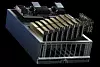 In this case, it is a PCI-Express 6.0 x16 link that is hooking an Aries retimer to a Blackwell GPU to extend the range of the PCI-Express link. The Scorpio P-Series switch in the box links to an Intel Xeon 5.0 processor and an Nvidia ConnectX-7 network interface stepping down to PCI-Express 5.0. A Micron Technology flash drive uses a single x1 lane running at PCI-Express 6.0 speed for storage. The Scorpio switch has 64 lanes of PCI-Express 6.0 signaling, and this setup uses 49 of those lanes, 32 of them running at the PCI-Express 5.0 half speed.