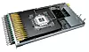 Here is a zoom shot on the Davisson package, with the 102.4 Tb/sec Tomahawk 6 ASIC in the center and the sixteen optical interconnects wrapped around the perimeter of the chip: