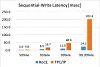 In order to measure the workload latency, we accessed storage both sequentially and randomly using simple read and write services. Here we focus on one such measurement and compare the average and tail latencies of RoCE with TCP/IP. First, we compared the average latency of 80 VMs, each continuously performing file writes using TCP/IP and RoCE: