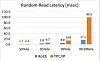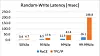 Similar results are measured in both random reads and random writes; in both cases, the results are, of course, significantly worse in cases of TCP/IP, due to heavier usage of the network, but much less in cases of RoCE, due to the fact that the transport is offloaded to the NIC.