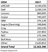 Dell posted HPC server sales of $2.33 billion, up 15.7 percent and beating the market overall. Lenovo was the number three HPC server shipper in 2016 with $909 million in sales, but fell by 4.3 percent in 2017 to just under $870 million. Chinese system maker Inspur came out of nowhere to take over the number 4 revenue ranking in HPC servers last year, with $740.2 million in revenues. We do not have the before numbers for Inspur for 2016, but it has to be under $120 million because we can see all the vendors who did more than that in this data here, and that means Inspur grew its HPC server business in 2017 by at least a factor of 6.3X. IBM grew its Power Systems HPC business by 16.9 percent, beating the market, reaching $575.1 million, but it could not hold onto the number 4 position and was knocked out by Inspur to number 5. Sugon, which sells under the Dawning brand in China, similarly jumped ahead of Cray, with 10.7 percent growth to $348.9 million in HPC server revenues, but that jump was mostly because Cray’s HPC systems sales fell by 45.7 percent to $250.2 million last year. Fujitsu’s HPC server business was essentially flat at $227.8 million, and NEC and Bull/Atos showed modest growth to hit $171.3 million and $133.4 million, respectively. The share of other HPC system makers was down a smidgen to $2.42 billion, comprising 19.7 percent of the market.