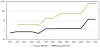 That is very hard to read on the CPU, but you get a good sense of the GPU jumps. Here is a log scale to show how CPU and GPU performance (in petaflops again) have tracked alongside each other in the HPC1 through HPC6 systems: